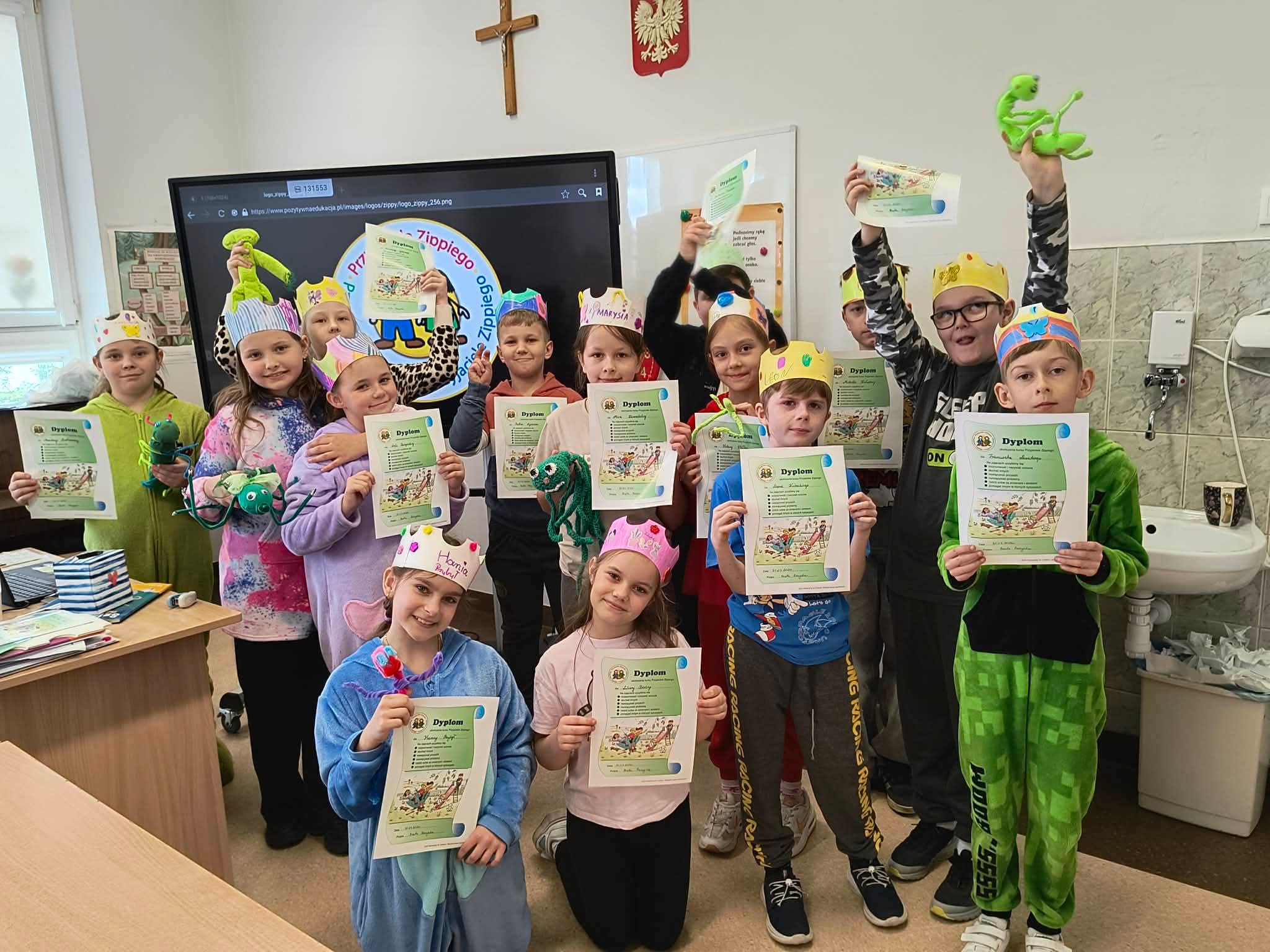 Klasa 3 zakończyła 24 godzinny program profilaktyczny: „Przyjaciele Zippiego” Zajęcia przebiegały w atmosferze otwartości, bezpieczeństwa i wzajemnego szacunku. Uczniowie chętnie uczestniczyli w proponowanych aktywnościach, dzielili się swoimi doświadczeniami oraz aktywnie brali udział w rozmowach i ćwiczeniach. Z pomocą rodziców wykonali maskotki patyczaka, które towarzyszyły im w klasie w czasie zajęć.